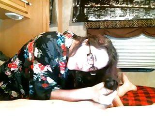 Komm her mit deiner Muschi du geiles Stück Oma beim Onanieren mit Cumshot